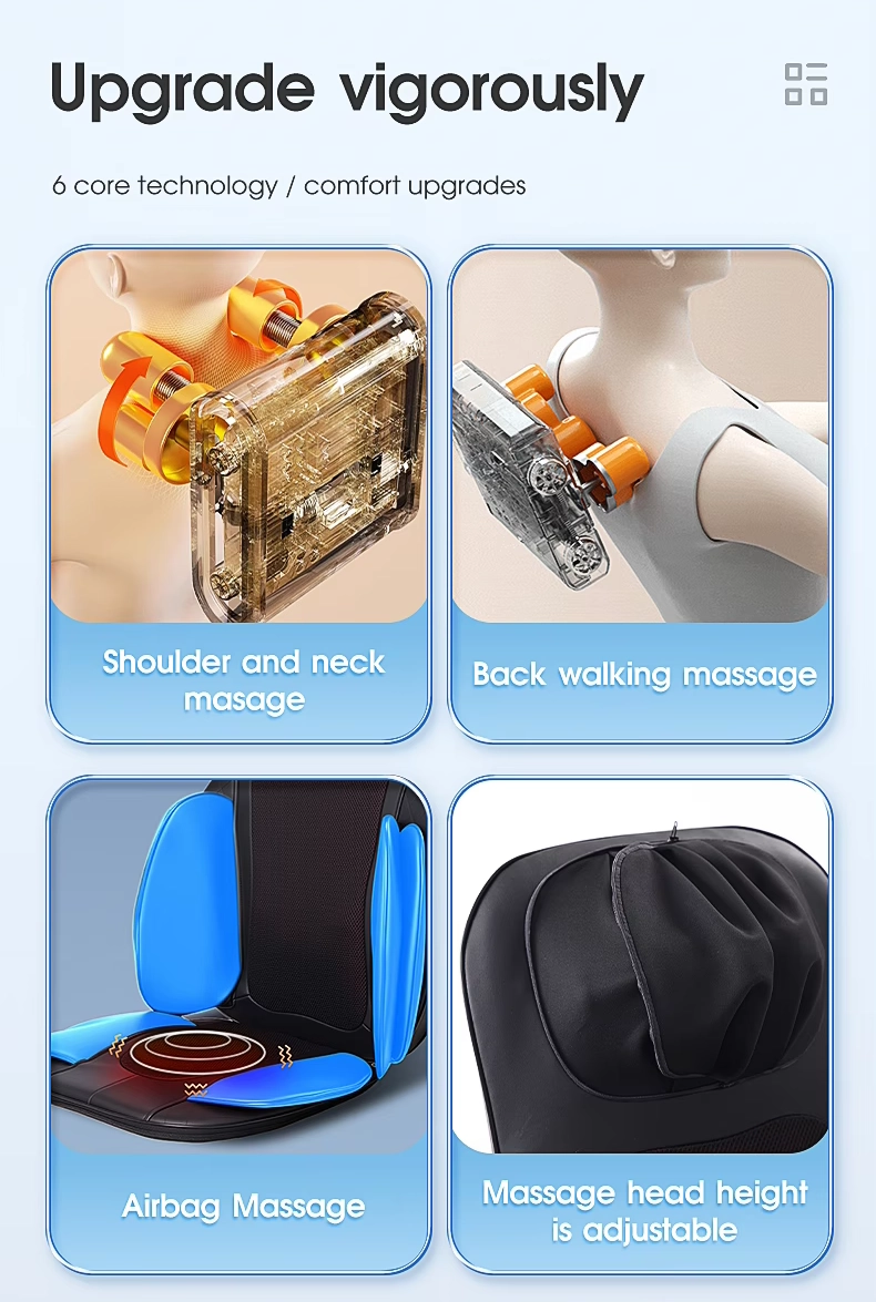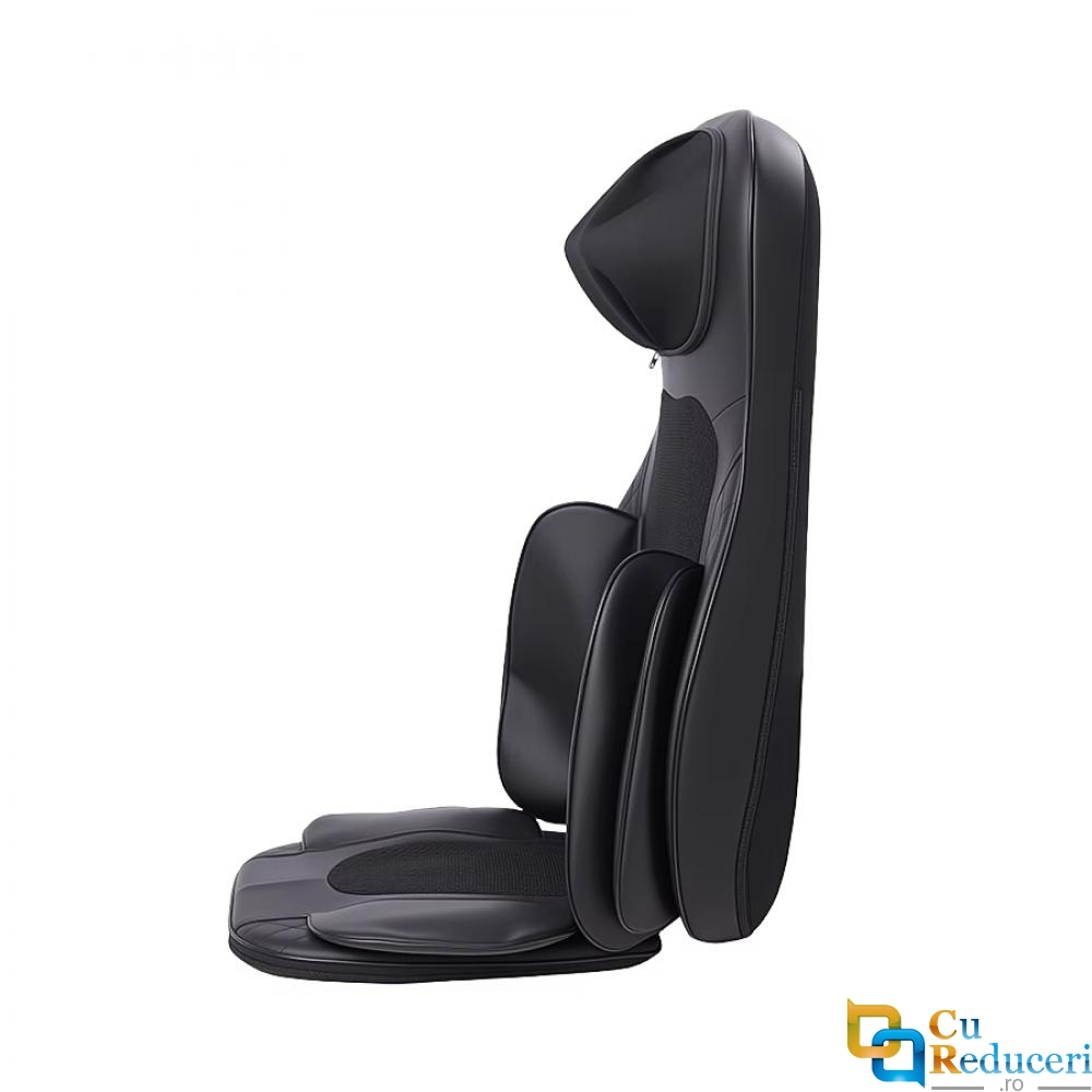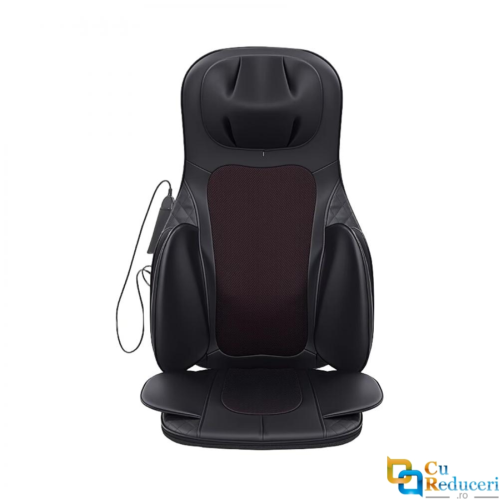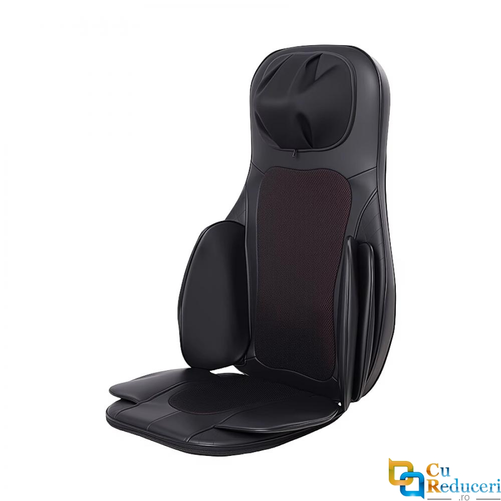 Acest scaun de masaj electric portabil ofera un masaj profund de tip Shiatsu, combinat cu functie de incalzire si vibratii, pentru a elibera tensiunea musculara si a imbunatati circulatia sangelui.