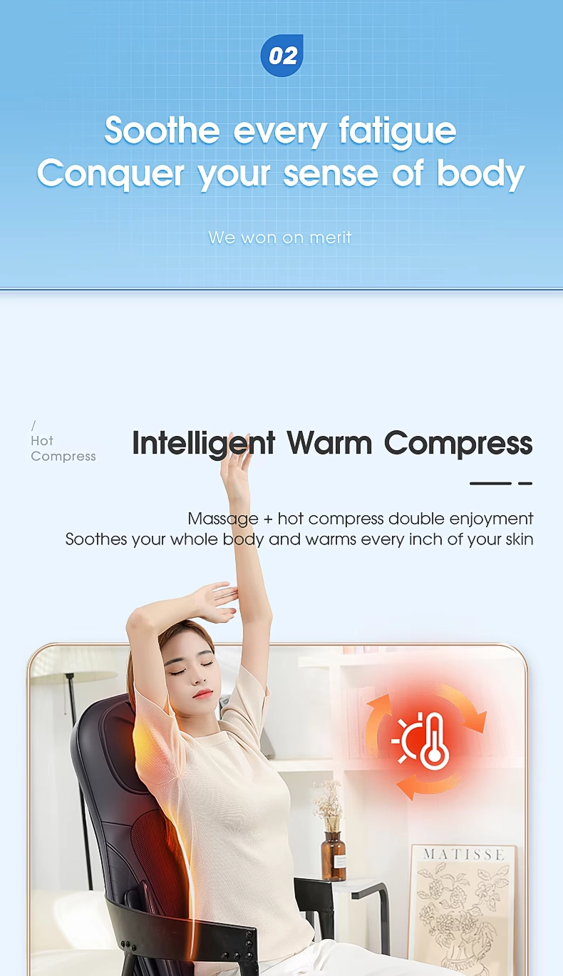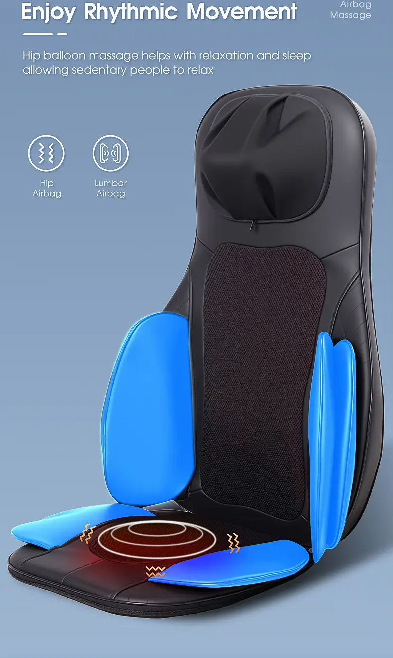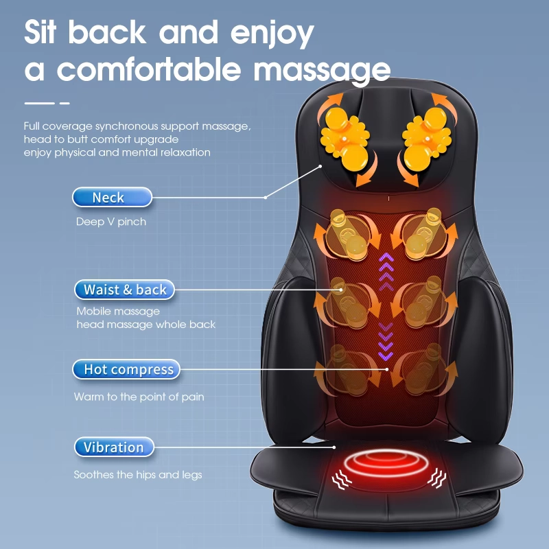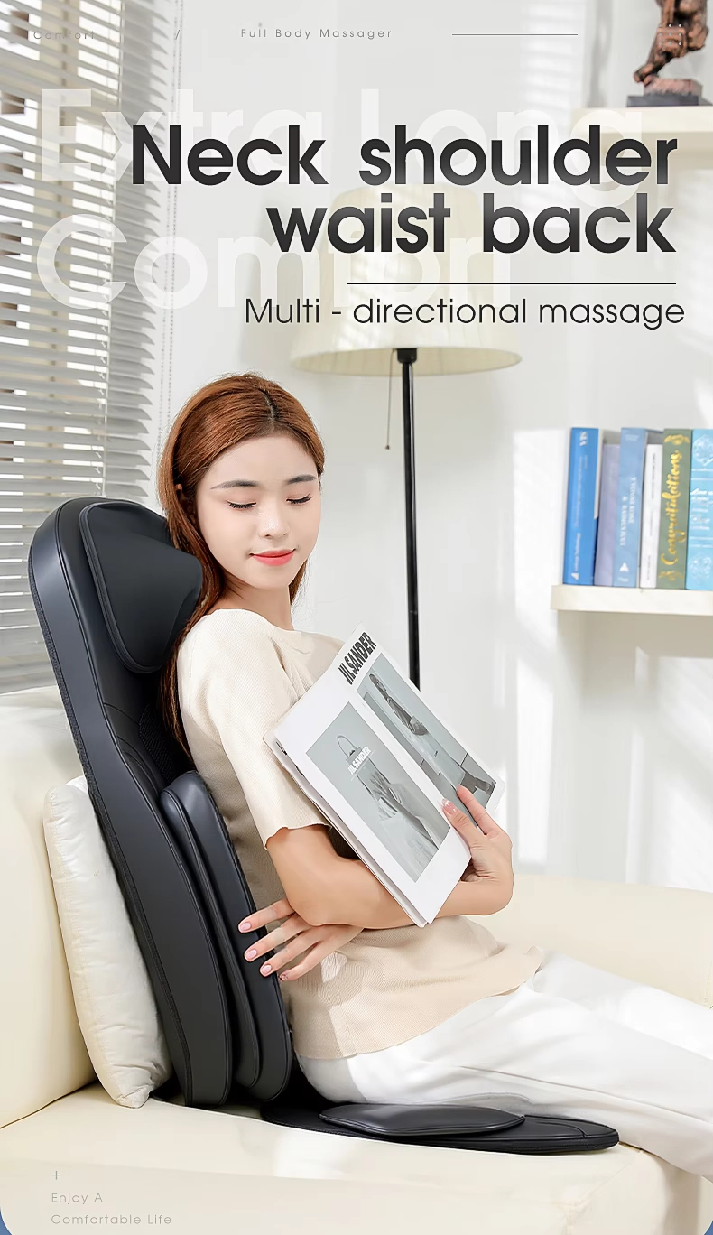Acest scaun de masaj electric portabil ofera un masaj profund de tip Shiatsu, combinat cu functie de incalzire si vibratii, pentru a elibera tensiunea musculara si a imbunatati circulatia sangelui.